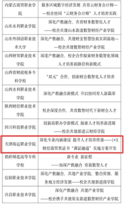 航运经济系大数据与会计教研室提交的《深化专业内涵建设提升人才培养质量—1+X财经商贸类证书“课证融通”实施方案开发》案例被评为中国商业会计学会数智人才培养优秀成果案例,并入选中国商业会计学会数智人才培养优秀成果案例集。