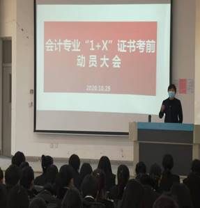 此次考评工作能够顺利完成,离不开院、系部领导的大力支持、会计教研师团队老师的通力合作和充分的前期准备工作。武莉书记在2020年10月29日进行了1+X考证动员大会,充分调动了同学们考证的热情。自暑假开始,会计教研室全体教师利用假期,在线上进行了1+X师资培训,为后期线下学生培训奠定了良好基础。