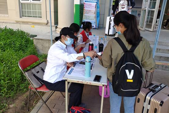 在我系全体教师的共同努力下,5月27日从早上7:00钟开始,到子夜24:00,系部老师陆续迎接来了1200多名同学安全返校,实现从学校大门到宿舍全闭环“精准服务”。大门口执勤的张敏老师不到7点钟就到岗了,甚至都没时间吃早餐;四公寓值守的何知秋老师一直在一件一件帮学生们抬很重的行李箱;高洪超老师像个脚踩“风火轮”的超人,不厌其烦地帮助同学们解决各种各样的问题;张楠老师一直从早到晚一遍一遍帮同学们测温,周艳老师则一直低头给同学们做记录和数据统计……..太多感人的瞬间,太多熟悉的身影。最后幽默地方煜老师做了精辟地总结:“这没什么,老师应该做的,看到同学们能安全返校复课,我们身体累心里甜。”